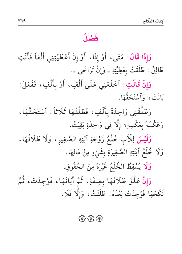 وَلَيْسَ لِلْأَبِ خَلْعُ زَوْجَةِ ابْنِهِ الصَّغِيرِ، وَلَا طَلَاقُهَا، وَلَا خَلْعُ ابْنَتِهِ الصَّغِيرَةِ بِشَيْءٍ مِنْ مَالِهَا.