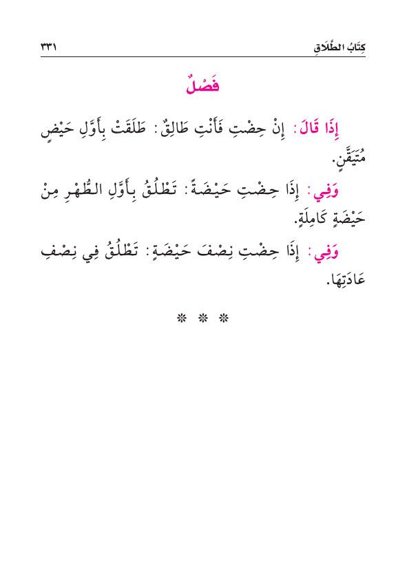 وَفِي: إِذَا حِضْتِ حَيْضَةً: تَطْلُقُ بِأَوَّلِ الطُّهْرِ مِنْ حَيْضَةٍ كَامِلَةٍ.