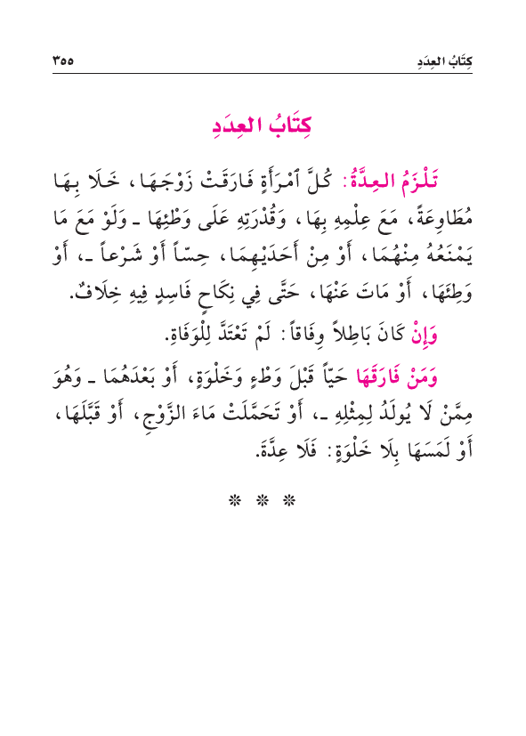 تَلْزَمُ العِدَّةُ كُلَّ امْرَأَةٍ فَارَقَتْ زَوْجَهَا خَلَا بِهَا مُطَاوِعَةً، مَعَ عِلْمِهِ بِهَا، وَقُدْرَتِهِ عَلَى وَطْئِهَا، وَلَوْ مَعَ مَا يَمْنَعُهُ مِنْهُمَا، أَوْ مِنْ أَحَدَيْهِمَا حِسًّا أَوْ شَرْعًا، أَوْ وَطِئَهَا، أَوْ مَاتَ عَنْهَا، حَتَّى فِي نِكَاحٍ فَاسِدٍ فِيهِ خِلَافٌ.