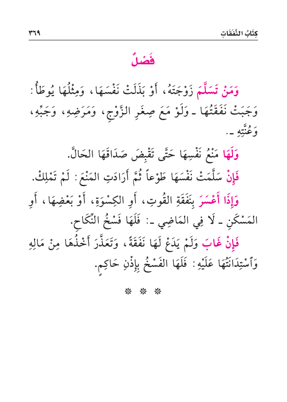 وَمَنْ تَسَلَّمَ زَوْجَتَهُ، أَوْ بَذَلَتْ نَفْسَهَا، وَمِثْلُهَا يُوطَأُ: وَجَبَتْ نَفَقَتُهَا، وَلَوْ مَعَ صِغَرِ الزَّوْجِ وَمَرَضِهِ وَجَبِّهِ وَعُنَّتِهِ.