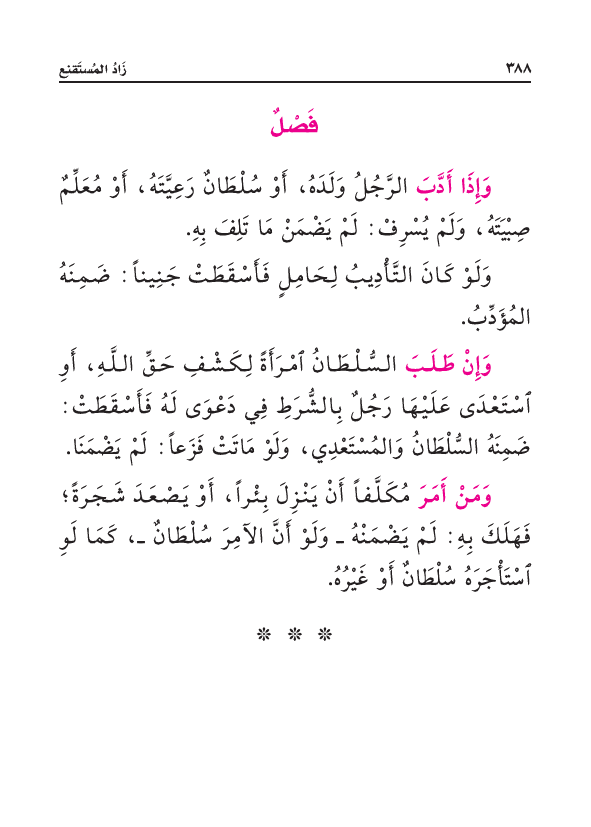 وَإِذَا أَدَّبَ الرَّجُلُ وَلَدَهُ، أَوْ سُلْطَانٌ رَعِيَّتَهُ، أَوْ مُعَلِّمٌ صِبْيَتَهُ، وَلَمْ يُسْرِفْ: لَمْ يَضْمَنْ مَا تَلِفَ بِهِ.