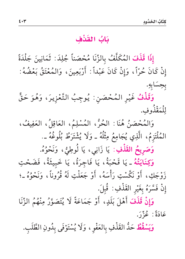 إِذَا قَذَفَ المُكَلَّفُ بِالزِّنَا مُحْصَناً: جُلِدَ ثَمَانِينَ جَلْدَةً إِنْ كَانَ حُرًّا، وَإِنْ كَانَ عَبْدًا: أَرْبَعِينَ، وَالمُعْتَقُ بَعْضُهُ: بِحِسَابِهِ.