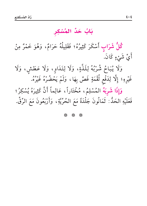 وَإِذَا شَرِبَهُ المُسْلِمُ مُخْتَارًا، عَالِمًا أَنَّ كَثِيرَهُ يُسْكِرُ: فَعَلَيْهِ الحَدُّ ثَمَانُونَ جَلْدَةً: مَعَ الحُرِّيَّةِ، وَأَرْبَعُونَ: مَعَ الرِّقِّ.