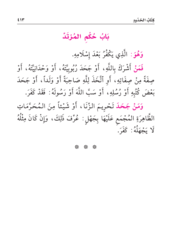 فَمَنْ أَشْرَكَ بِاللَّهِ، أَوْ جَحَدَ رُبُوبِيَّتَهُ، أَوْ وَحْدَانِيَّتَهُ، أَوْ صِفَةً مِنْ صِفَاتِهِ، أَوِ اتَّخَذَ لِلَّهِ صَاحِبَةً أَوْ وَلَدًا، أَوْ جَحَدَ بَعْضَ كُتُبِهِ أَوْ رُسُلِهِ، أَوْ سَبَّ اللَّهَ أَوْ رَسُولَهُ: فَقَدْ كَفَرَ.