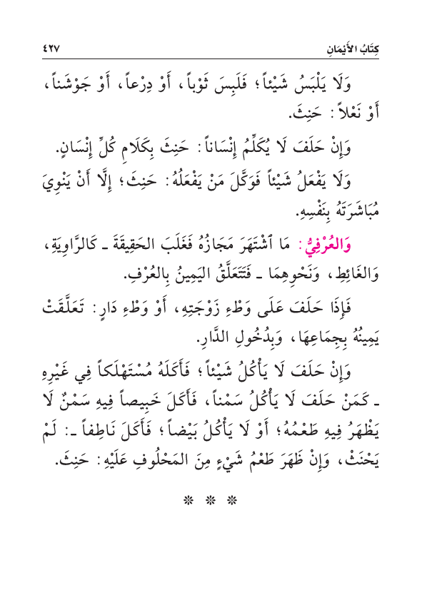 وَالعُرْفِيُّ: مَا اشْتَهَرَ مَجَازُهُ فَغَلَبَ الحَقِيقَةَ - كَالرَّاوِيَةِ، وَالغَائِطِ، وَنَحْوِهِمَا - فَتَتَعَلَّقُ اليَمِينُ بِالعُرْفِ.