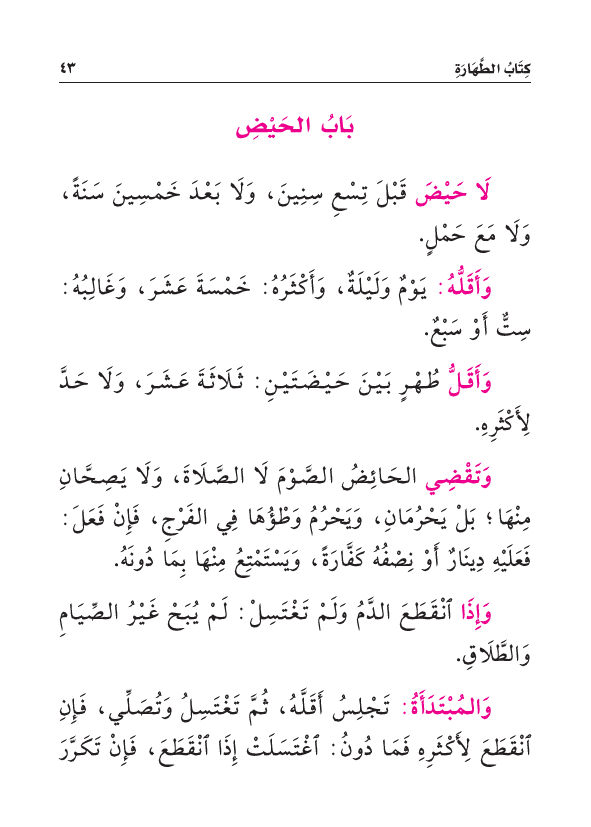 لَا حَيْضَ قَبْلَ تِسْعِ سِنِينَ، وَلَا بَعْدَ خَمْسِينَ سَنَةً، وَلَا مَعَ حَمْلٍ.