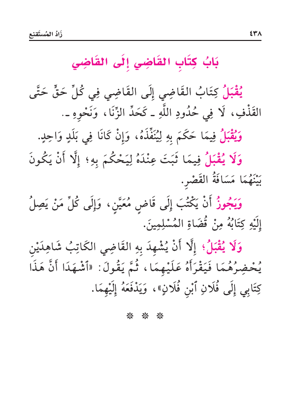 يُقْبَلُ كِتَابُ القَاضِي إِلَى القَاضِي فِي كُلِّ حَقٍّ حَتَّى القَذْفِ، لَا فِي حُدُودِ اللَّهِ - كَحَدِّ الزِّنَا، وَنَحْوِهِ -.