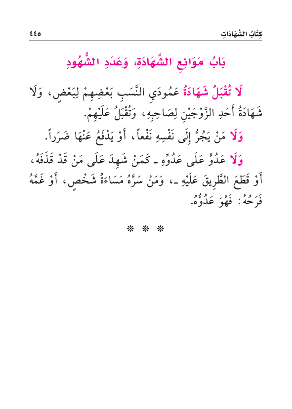 بَابُ مَوَانِعِ الشَّهَادَةِ وَعَدَدِ الشُّهُودِ