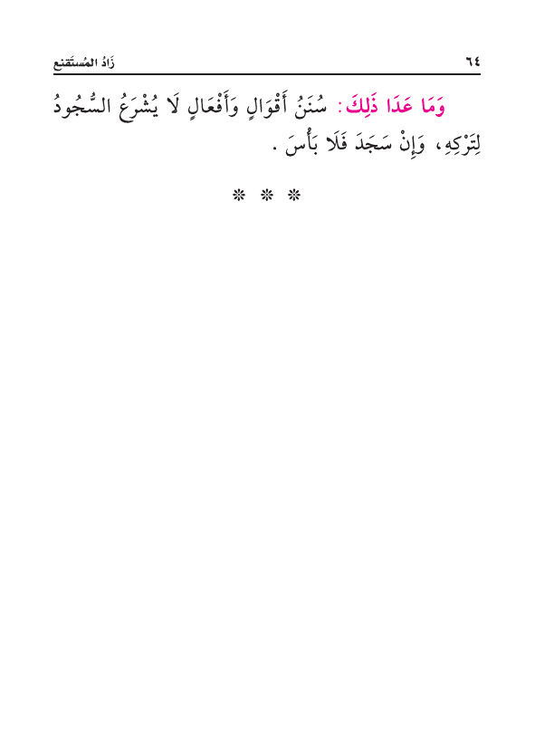 وَمَا عَدَا ذَلِكَ: سُنَنُ أَقْوَالٍ وَأَفْعَالٍ، لَا يُشْرَعُ السُّجُودُ لِتَرْكِهِ، وَإِنْ سَجَدَ فَلَا بَأْسَ.