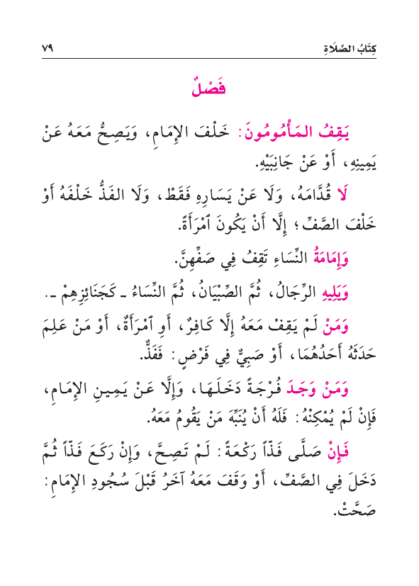يَقِفُ المَأْمُومُونَ: خَلْفَ الإِمَامِ، وَيَصِحُّ مَعَهُ عَنْ يَمِينِهِ، أَوْ عَنْ جَانِبَيْهِ.