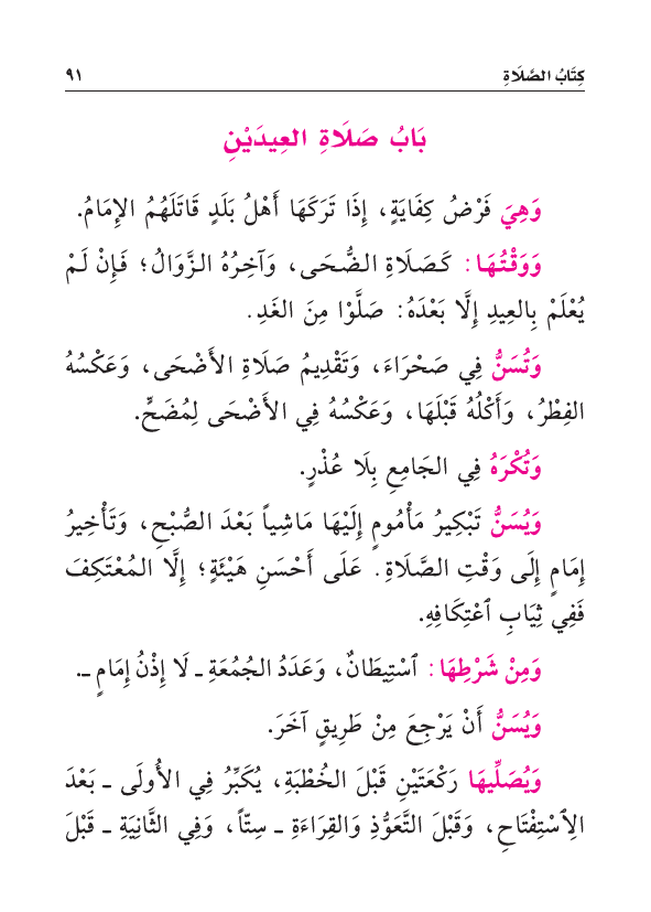 وَتُسَنُّ فِي صَحْرَاءَ، وَتَقْدِيمُ صَلَاةِ الأَضْحَى، وَعَكْسُهُ الفِطْرُ، وَأَكْلُهُ قَبْلَهَا، وَعَكْسُهُ فِي الأَضْحَى لِمُضَحٍّ.