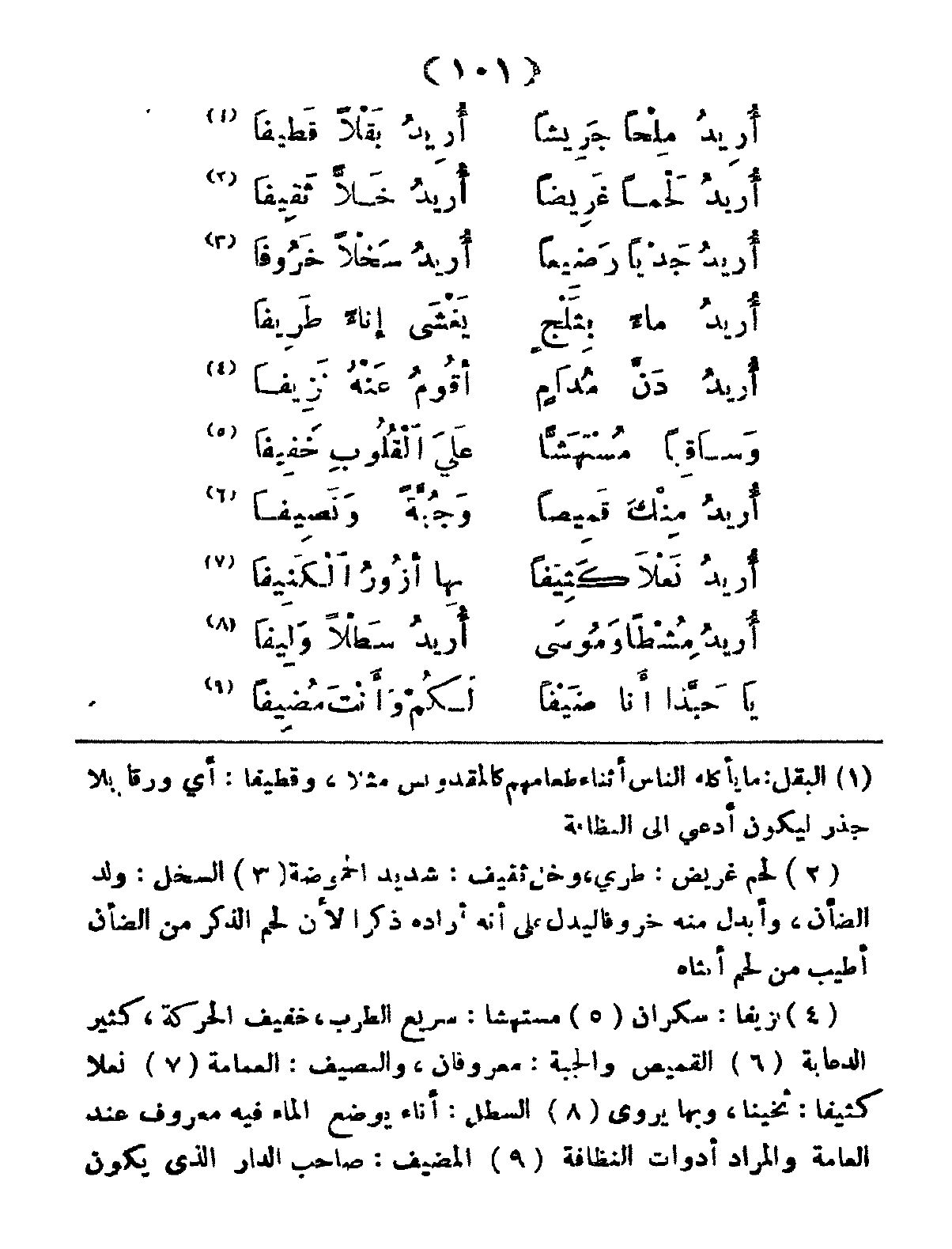 أُرِيدُ لَحْماً غَريضاً ... أُرِيدُ خَلاً ثَقِيفَاً