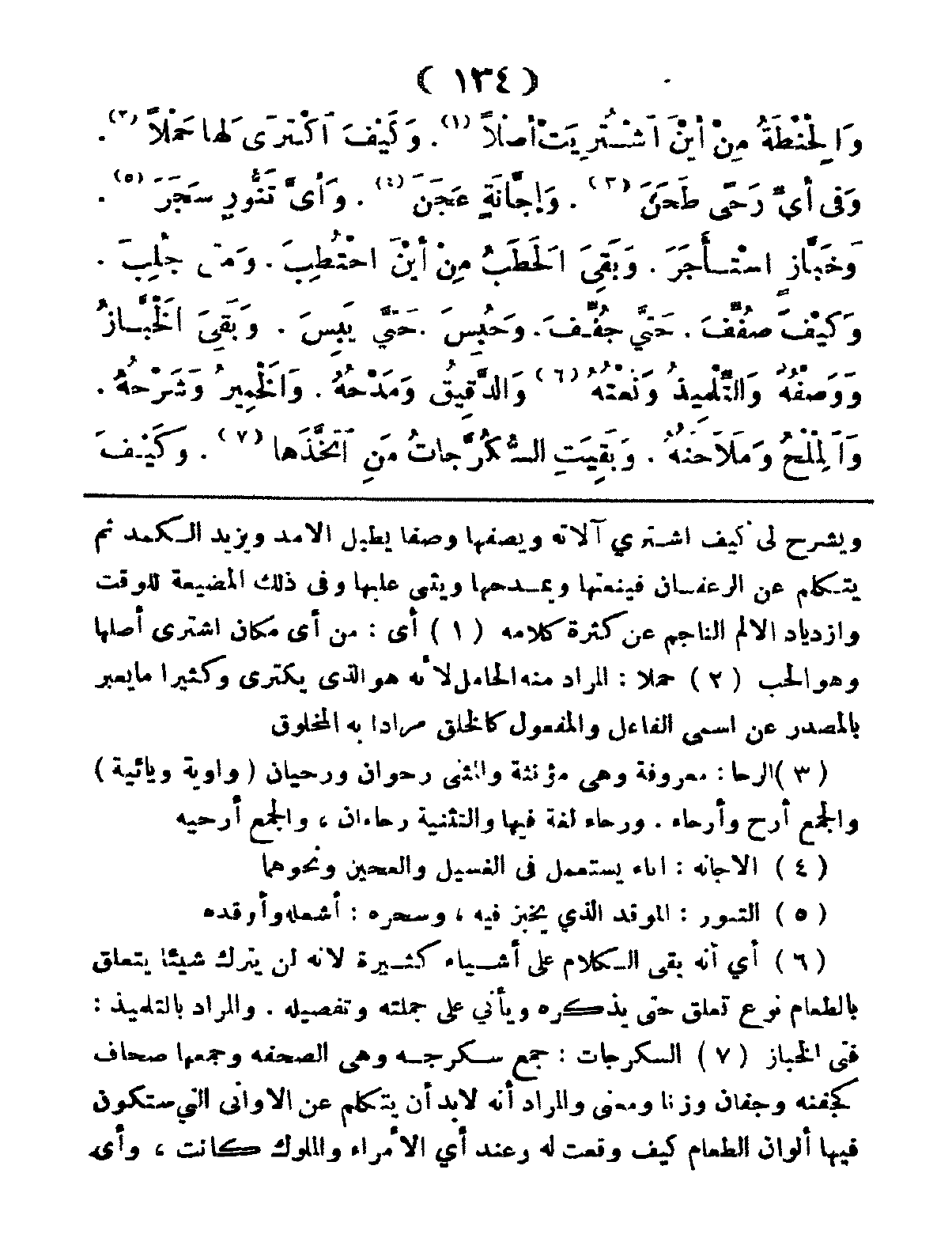 وَالحِنْطَةُ مِنْ أَيْنَ اشْتُرِيَتْ أَصْلاً، وَكَيْفَ اكْتَرى لَهَا حَمْلاً، وَفِي أَيِّ رَحىً طَحَنَ، وَإِجَّانَةٍ عَجَنَ، وَأَيَّ تَنُّورٍ سَجَرَ، وَخَبَّازٍ اسْتَأْجَرَ، وَبَقِيَ الحَطَبُ مِنْ أَيْنَ احْتُطِبَ، وَمَتَى جُلِبَ؟ وَكَيْفَ صُفِّفَ حَتَّى جُفِّفَ؟ وَحُبِسَ، حَتَّى يَبِسَ، وَبَقِيَ الخَبَّازُ وَوَصْفُهُ، وَالتِّلْمِيذُ وَنَعْتُهُ، وَالدَّقِيقُ وَمَدْحُهُ، وَالْخَمِيرُ وَشَرْحُهُ، وَالمِلْحُ ومَلاَحَتُهُ