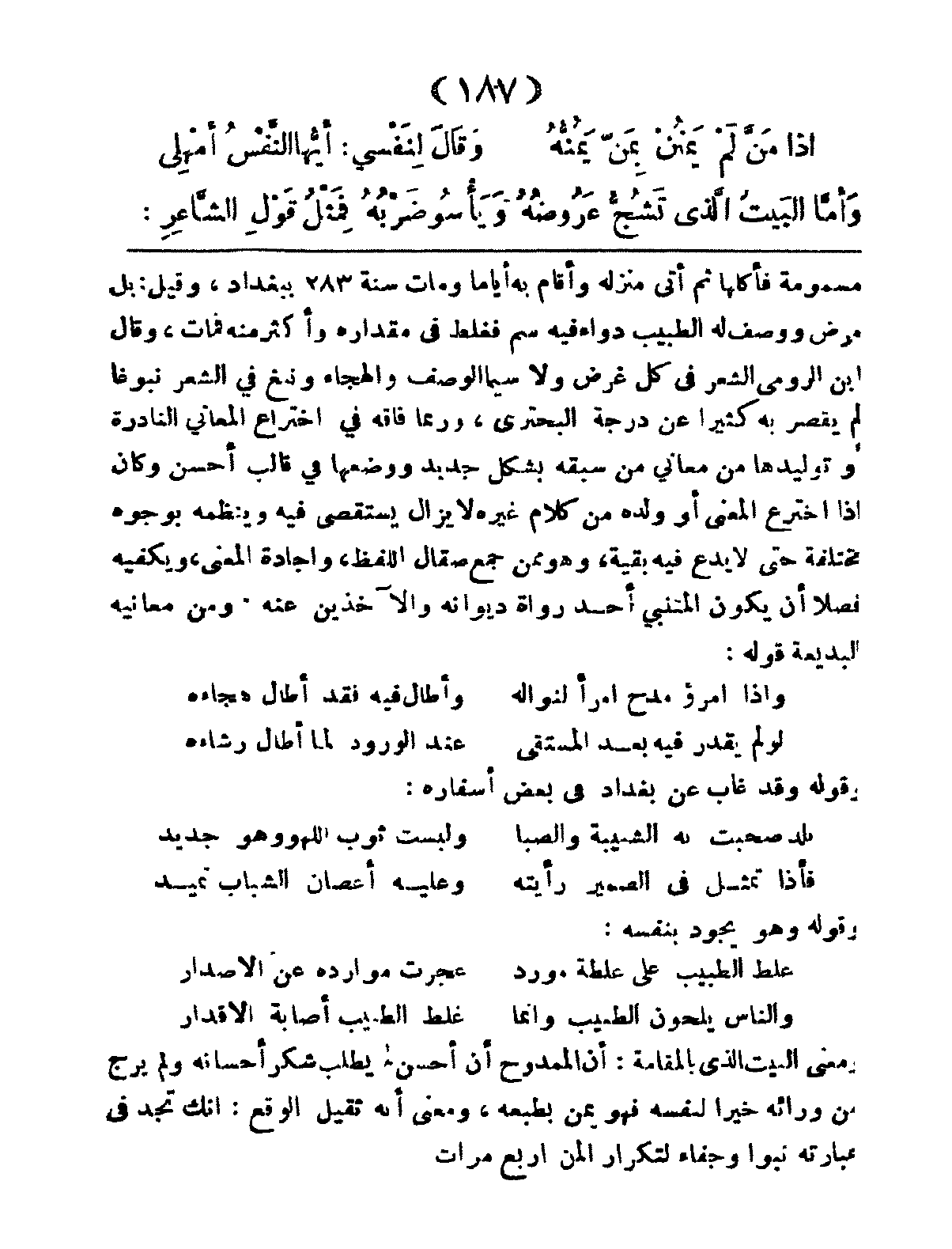 إِذَا مَنَّ لَمْ يَمْنُنْ بِمَنّ يَمُنُّهُوَقَالَ لِنَفْسي: أَيُّها النَّفْسُ أَمْهِلي
