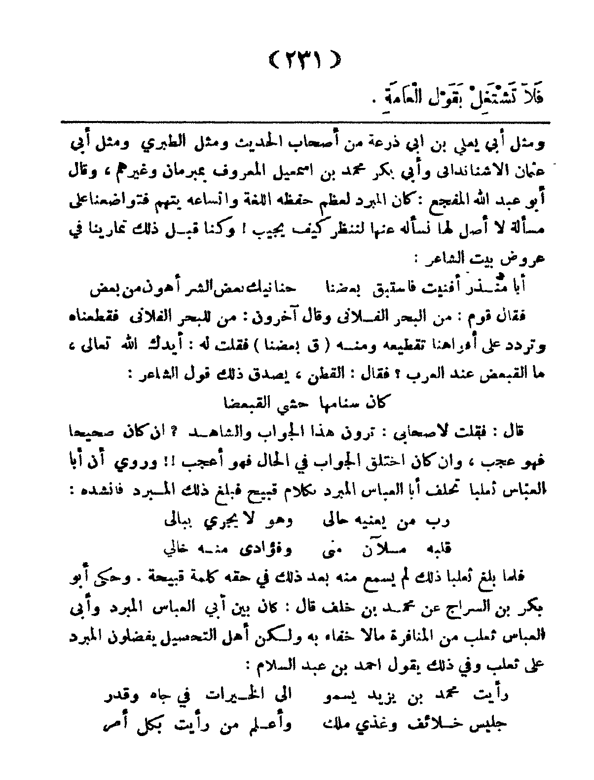فَلاَ تَشْتَغِلْ بِقَوْلِ العَامَّةِ؛