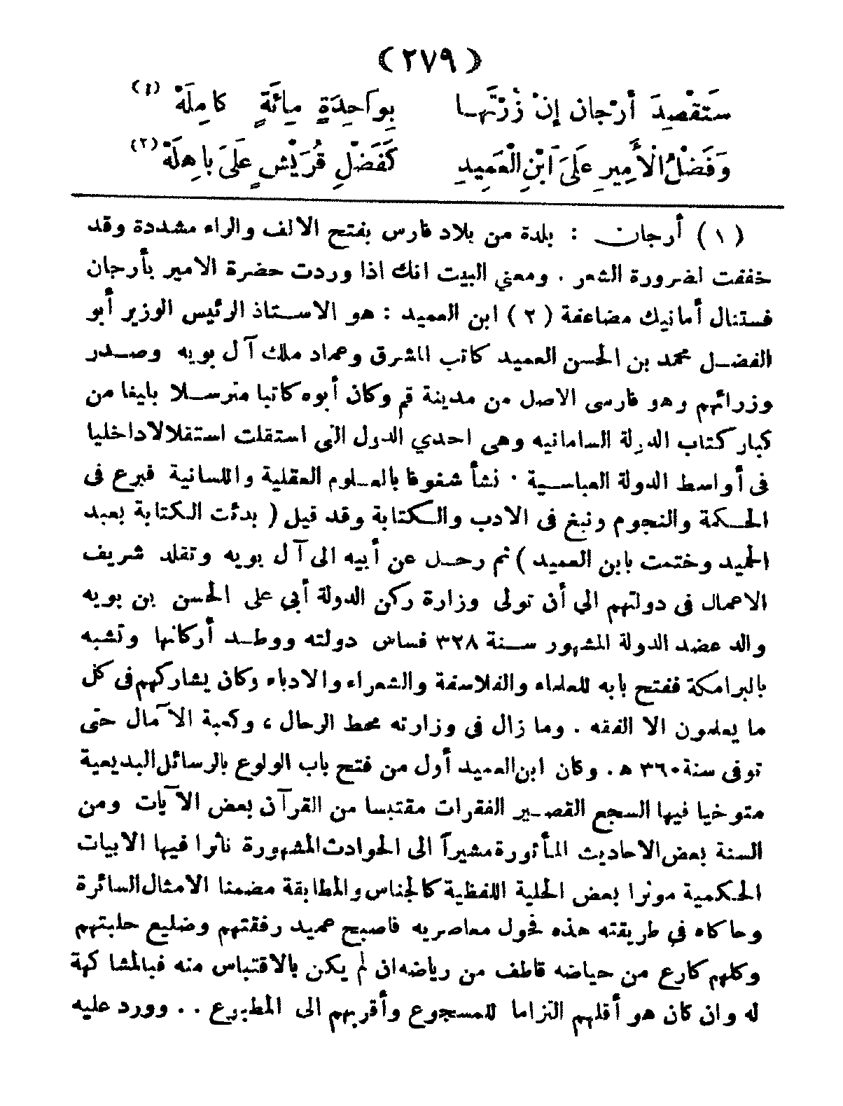 وَفَضْلُ الأَمِيرِ عَلَى ابْنِ العَمِيدِ ... كَفَضْلِ قُرَيْشٌ عَلَى بَاهِلَةْ