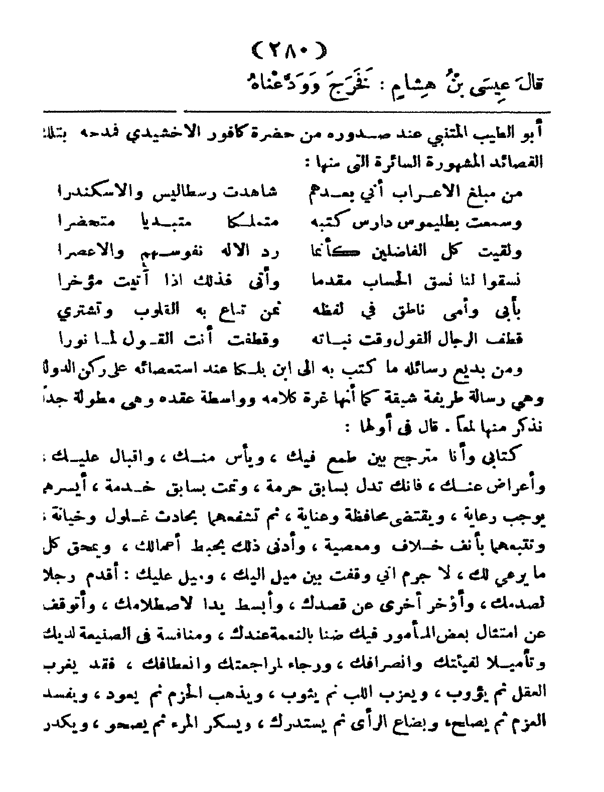 قَالَ عِيسَى بْنُ هِشَامٍ: فَخَرَجَ وَوَدَّعْناهُ