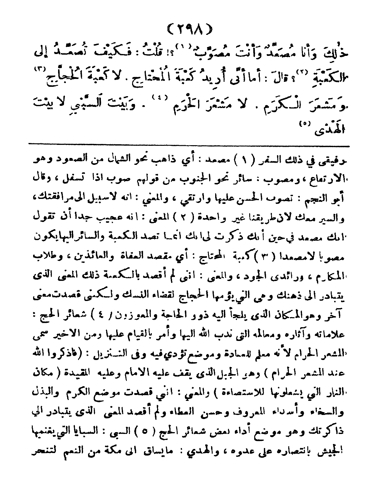 ذلِكَ وَأَنَا مُصَعِّدٌ وَأَنْتَ مُصَوِّبُ؟! قُلْتُ: فَكَيْفَ تُصَعِّدُ إِلَى الْكَعْبَةِ؟ قَالَ: أَمَا إِنِّي أُرِيدُ كَعْبَةَ المُحْتَاجِ، لاَ كَعْبَةَ الحُجَّاجِ، وَمَشْعَرَ الكَرَمِ، لاَ مَشْعَرَ الحَرَمِ، وَبَيْتَ السَّبْيِ، لا بَيْتَ الهَدْيِ،