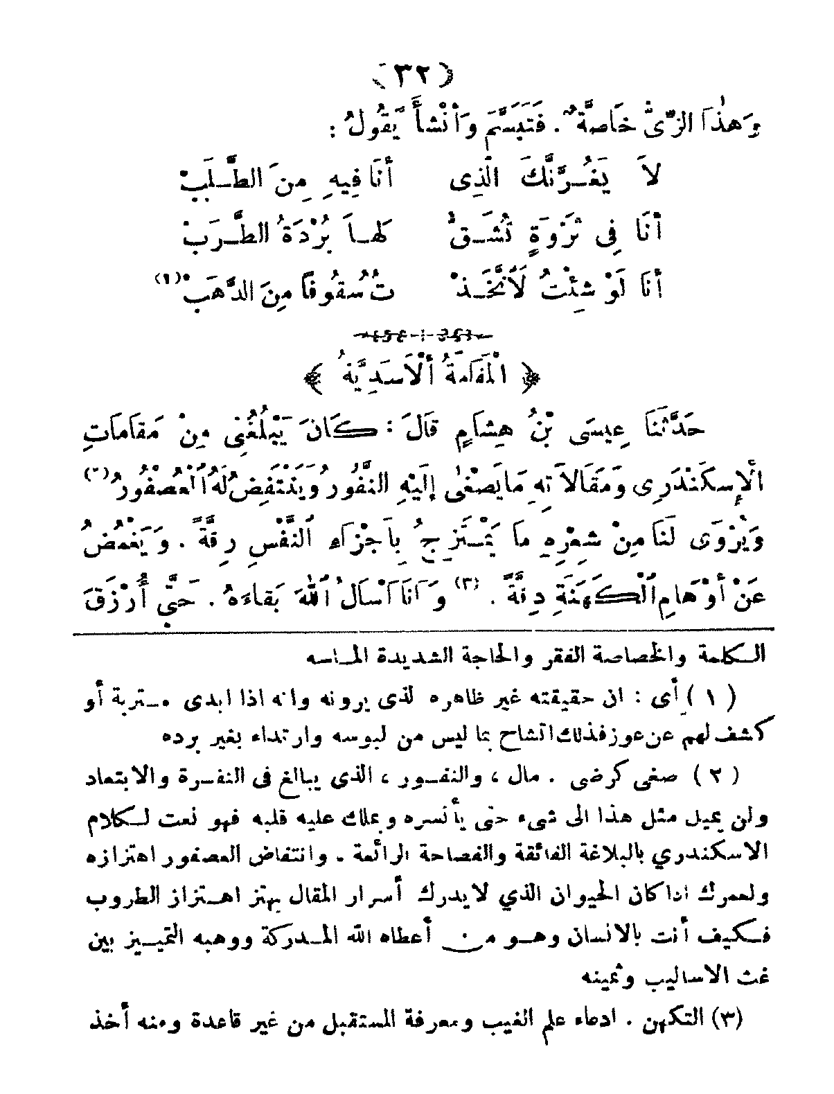 وَهذَا الزِّيِّ خَاصَّةٌ، فَتَبَسَّمَ وَأَنْشأَ يَقولُ: