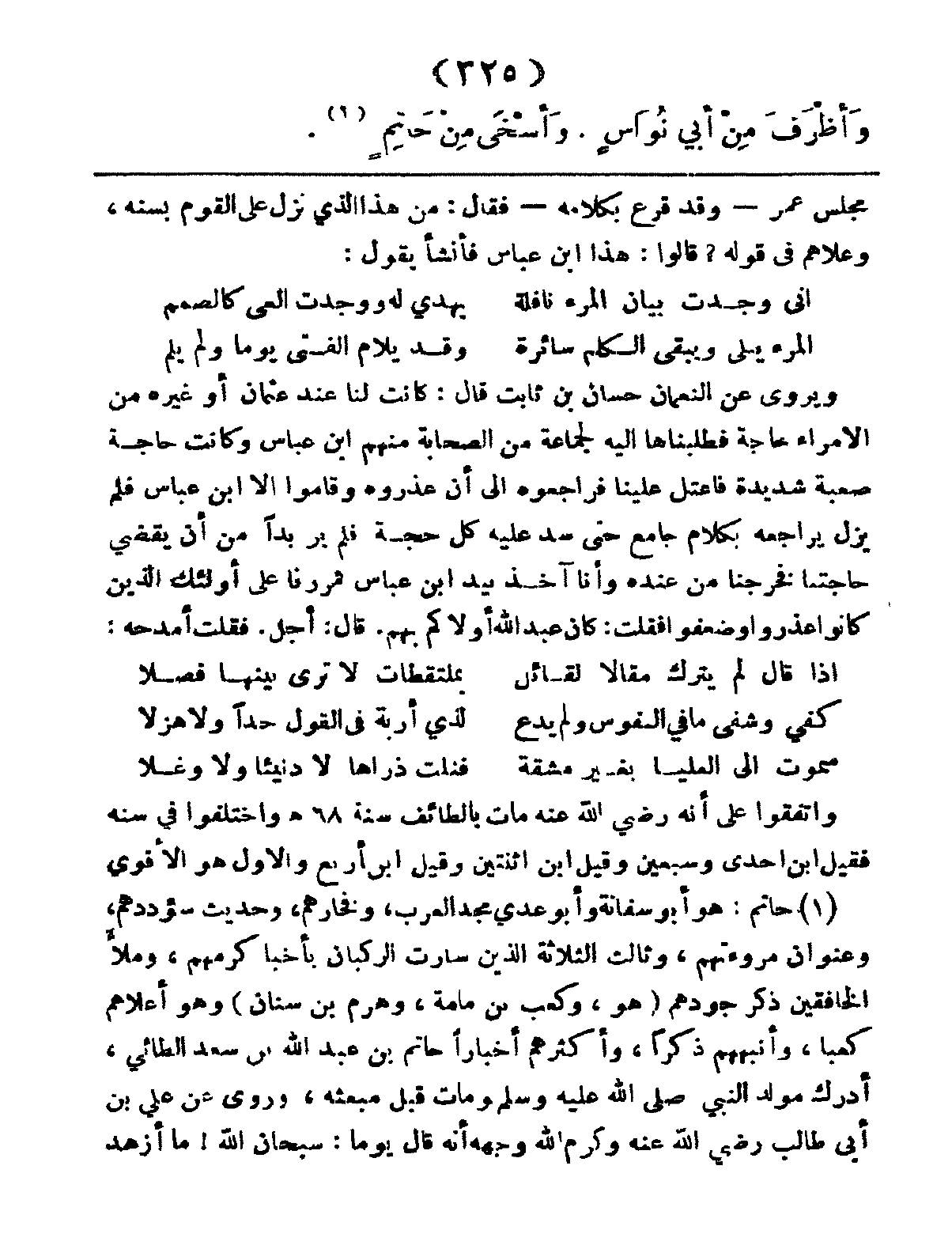 وَأَظْرَفَ مِنْ أَبي نُواسٍ، وَأَسْخَى مِنْ حَاتِمٍ،