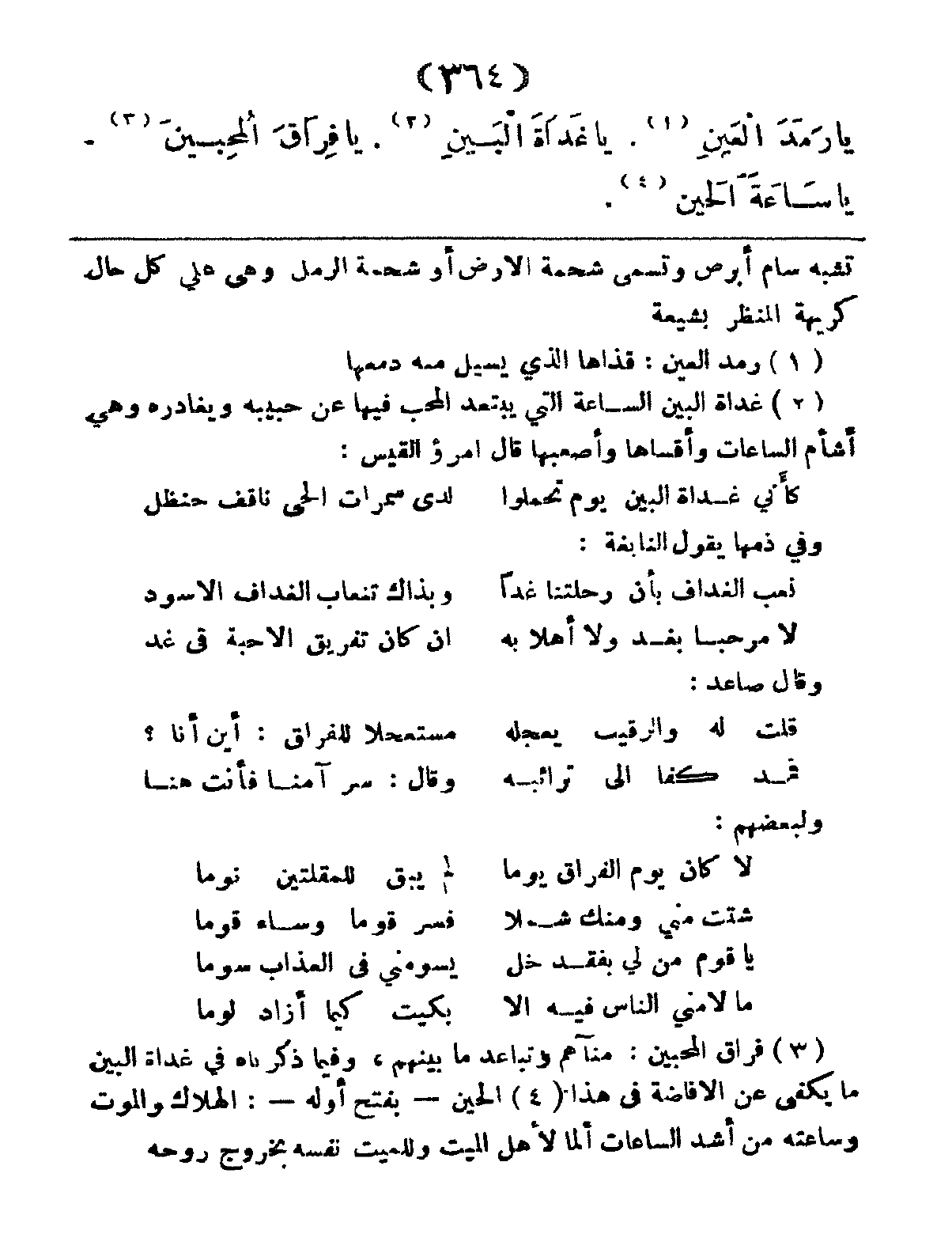 يَا رَمَدَ العَيْنِ، يَا غَدَاةَ الْبَيْنِ، يَا فِرَاقَ المُحِبَّيْن، يَا سَاعةَ الحَيْنِ