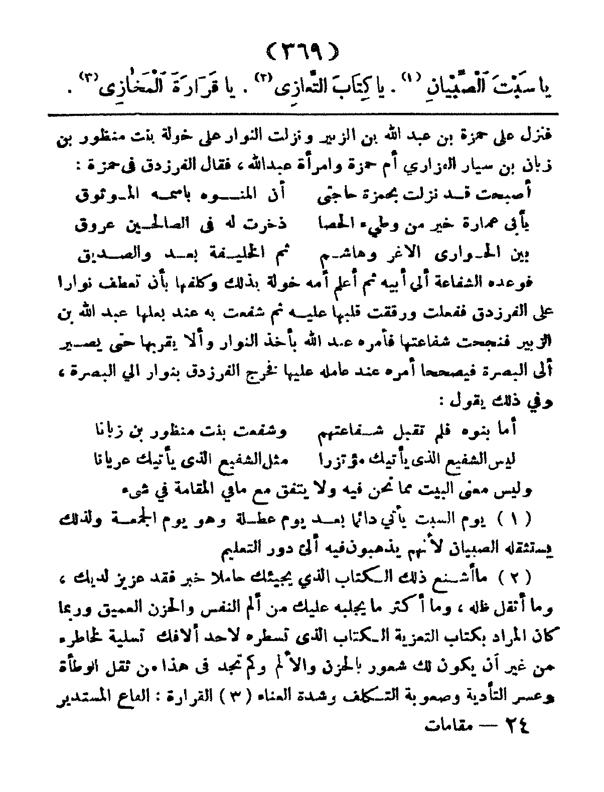 يَا سَبْتَ الصِّبْيَانِ، يَا كِتَابَ التَّعَازِي، يَا قَرَارَةَ المَخازِي،
