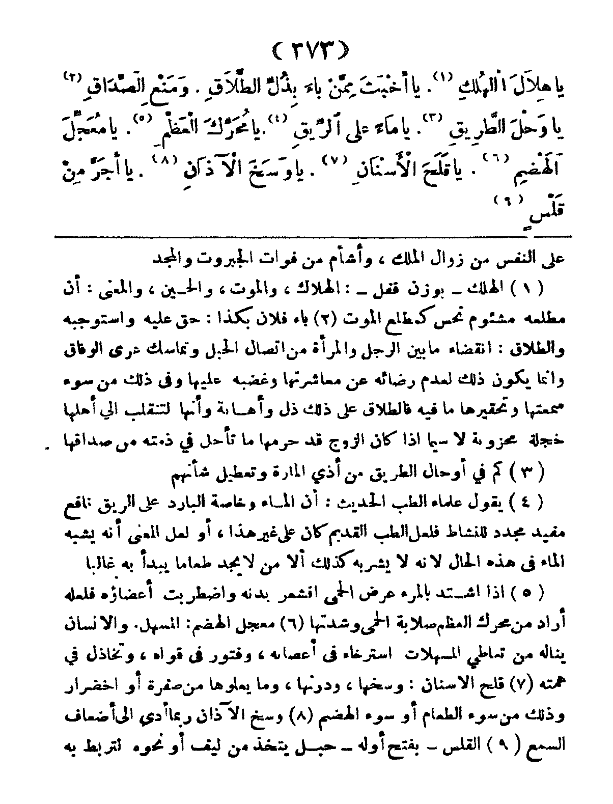 يَا هِلاَلَ لهُلكِ، يَا أَخْبَثَ مِمَّنْ بَاءَ بِذُلِّ الطَّلاَقِ، وَمَنْعِ الصَّدَاقِ، يَا وَحْلَ الطَّرِيقِ، يَا مَاءً عَلى الرِّيقِ يَامُحَرِّكَ العَظْمِ يَامُعَجِّلَ الهَضْمِ يا قَلَحَ الأَسْنَانِ، يَا وَسَخَ الآذَانِ، يَا أَجَرَّ مِنْ قَلْسٍ،