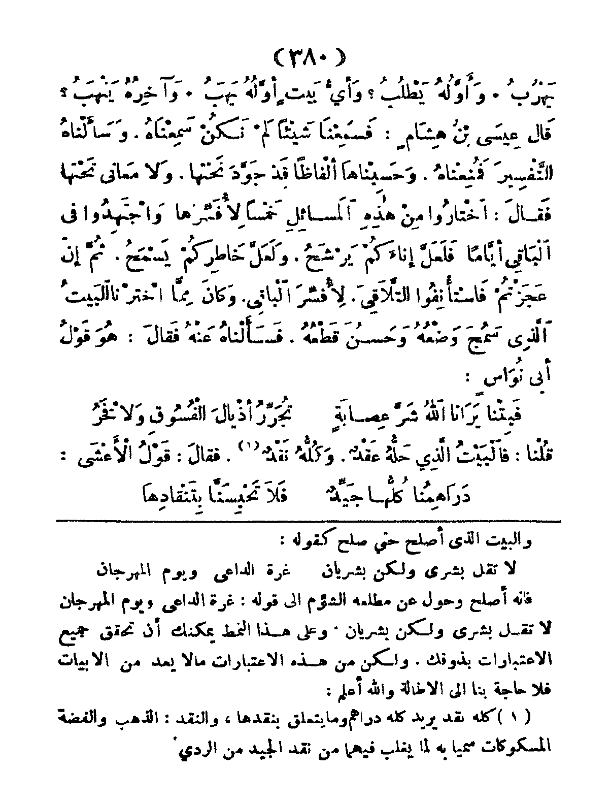 قُلْنَا: فَالْبَيْتُ الَّذِي حَلُّهُ عَقْدٌ، وَكُلُّهُ نَقْدٌ، فَقَالَ: قُوْلُ الأَعْشَى: