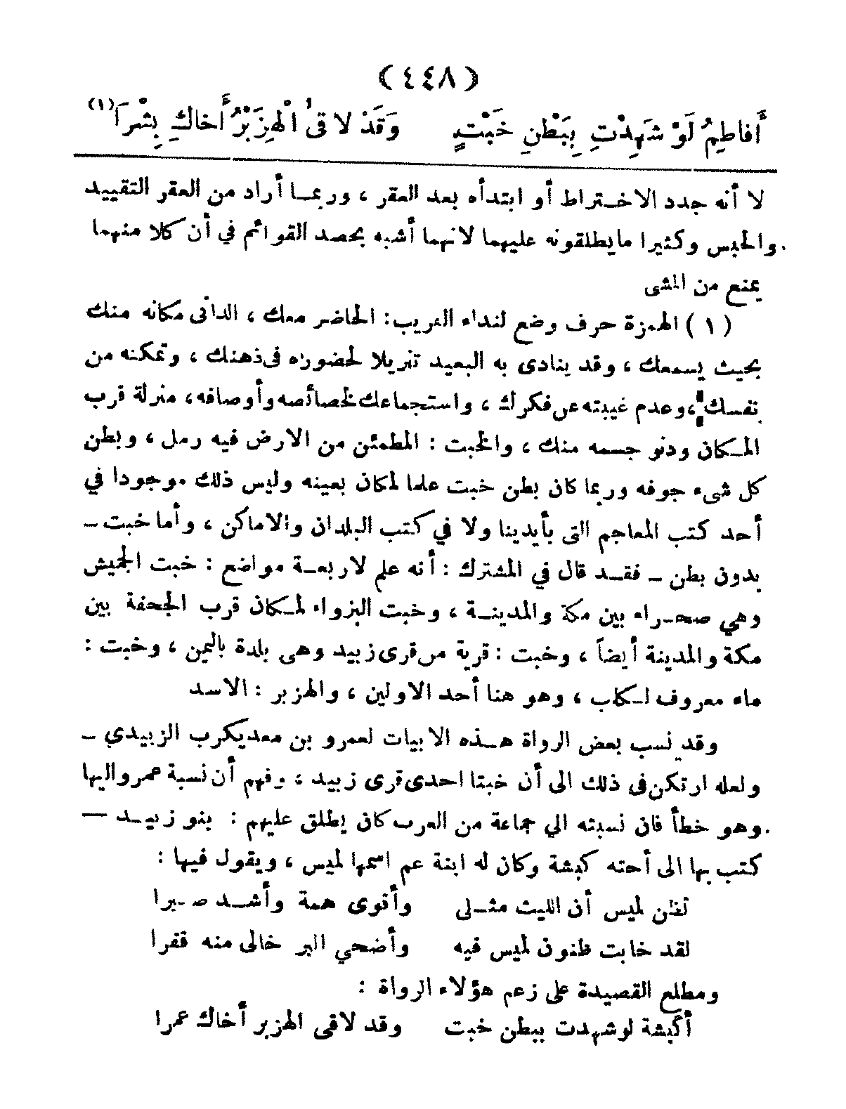 أَفَاطِمُ لَوْ شَهِدْتِ بِبَطْنِ خَبْتٍ ... وَقَدْ لاَقى الهِزَبْرُ أَخَاكِ بِشْرَا