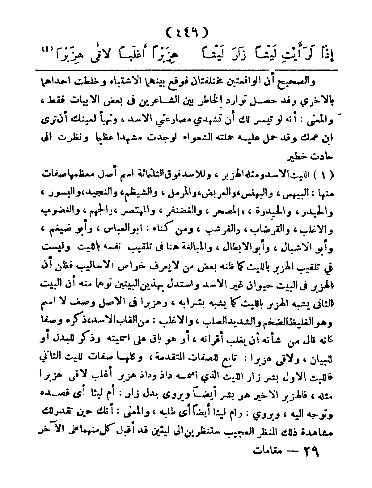 إِذاً لَرَأَيْتِ لَيْثاً زَارَ لَيْثاً ... هِزَبْرَاً أَغْلَباُ لاقى هِزَبْرَا