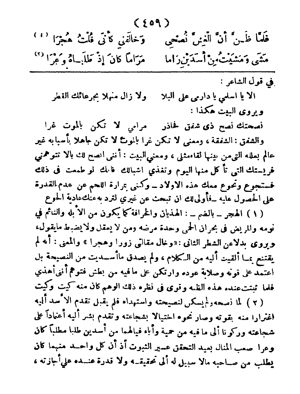 مَشَى وَمَشَيْتُ مِنْ أَسَدَيْنَ رَاما ... مَرَاماً كانَ إِذْ طَلَباهُ وَعْرَا