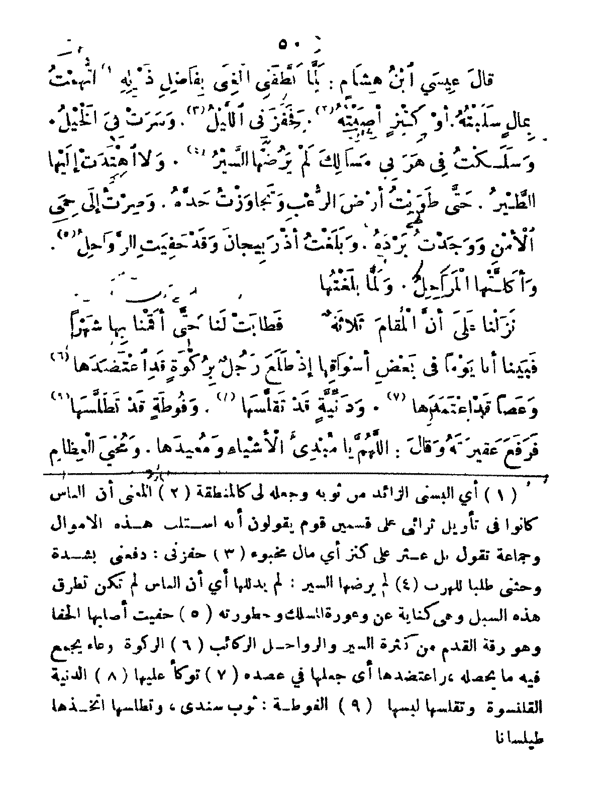 فَبَيْنَا أَنا يَوْماً في بِعْضِ أَسْوَاقِها إِذْ طَلَعَ رَجُلٌ بِرَكْوَةٍ قَدِ اعْتَضَدَهَا وَعَصاً قَدِ اعْتَمَدَها، وَدنِّيَّةٍ قَدْ تَقَلَّسَهَا، وَفُوطةٍ قدْ تَطَلَّسَهَا، فَرَفَعَ عَقِيرَتَهُ وَقَالَ: اللَّهُمَّ يا مُبْدِئَ الأَشْيَاءِ وَمُعيدَهَا، وَمُحْيِيَ الْعِظَامِ
