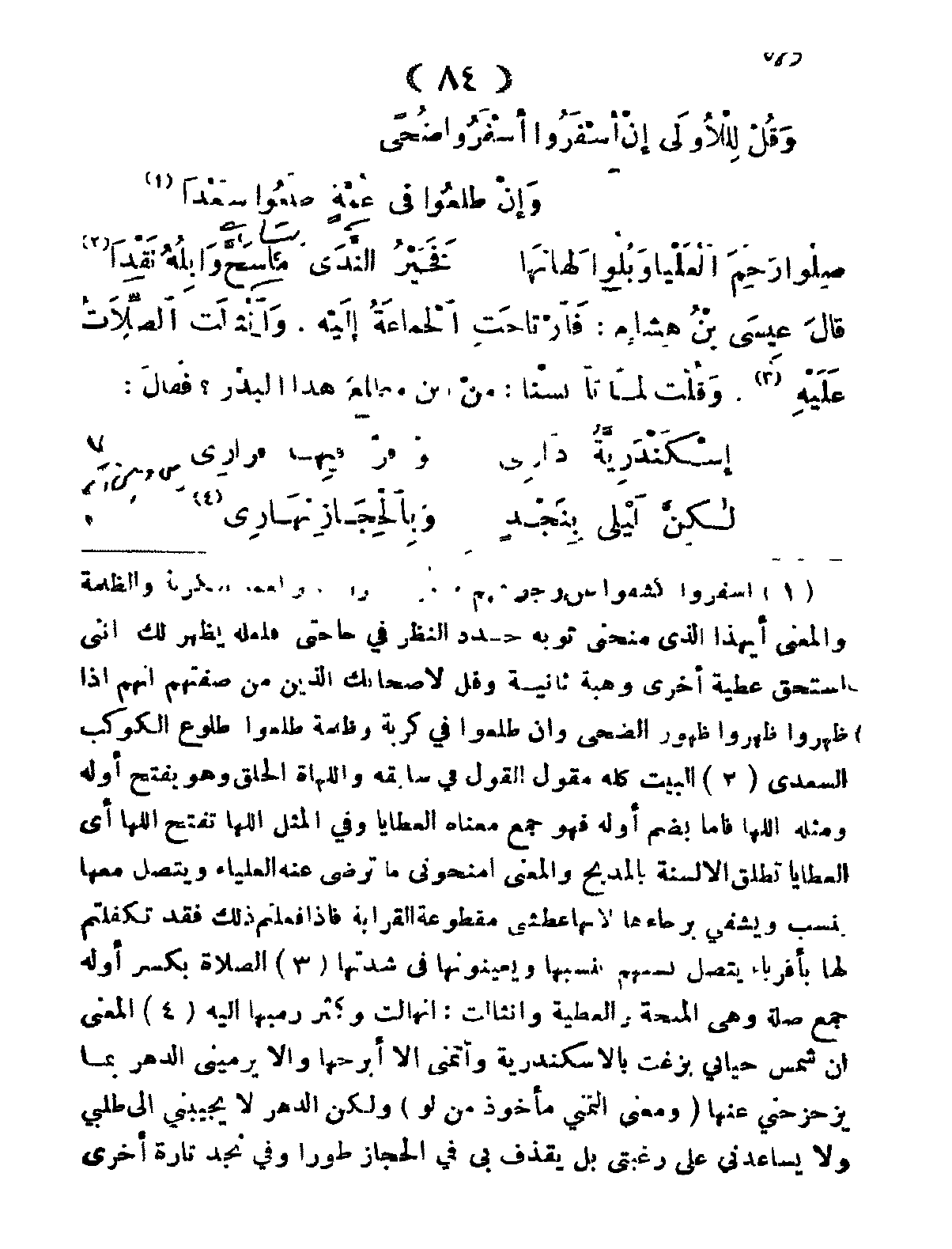 قَالَ عِيسَى بْنُ هِشَامٍ: فَارْتاحَتِ الجَمَاعَةُ إِلَيْهِ، وَانْثَالَتِ الصِّلاَتُ عَلَيهِ، وَقُلْتُ لَمَّا تآنَسْنَا: مِنْ أَيْنَ مَطْلُع هَذاَ البَدْرِ؟ فَقالَ: