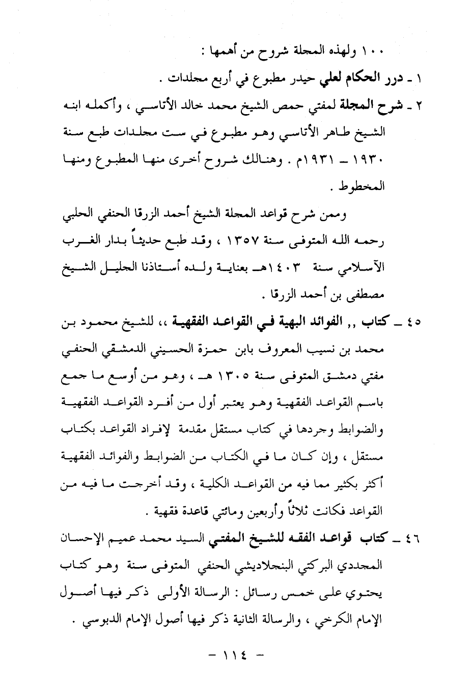 1 - درر الحكام لعلي حيدر مطبوع في أربع مجلدات.