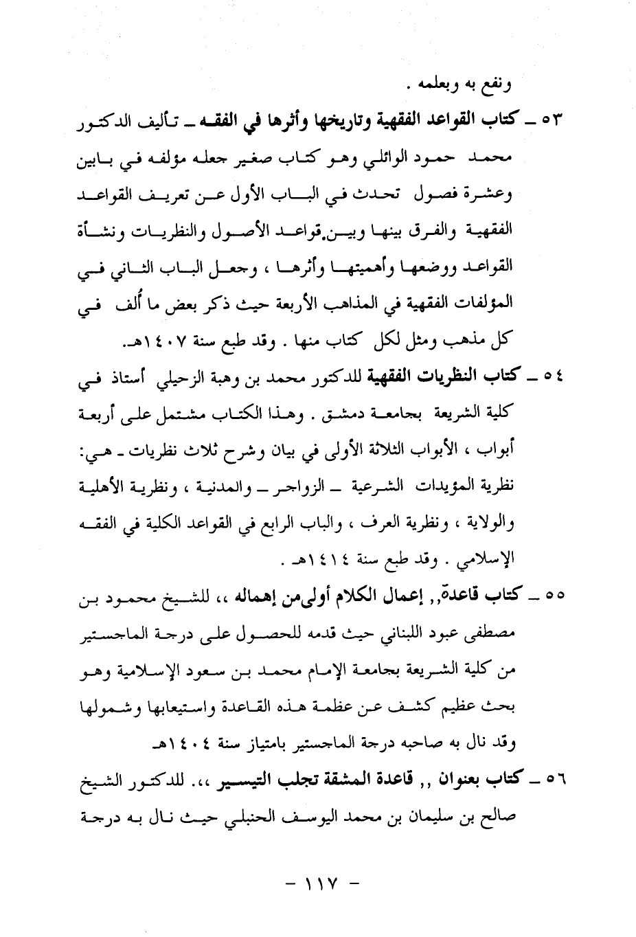 55 - كتاب قاعدة "إعمال الكلام أولى من إهماله" للشيخ محمود بن مصطفى عبود اللبناني حيث قدمه للحصول على درجة الماجستير من كلية الشريعة بجامعة الإمام محمد بن سعود الإسلامية وهو بحث عظيم كشف عن عظمة هذه القاعدة واستيعابها وشمولها وقد نال به صاحبه درجة الماجستير بامتياز سنة 1404 هـ.