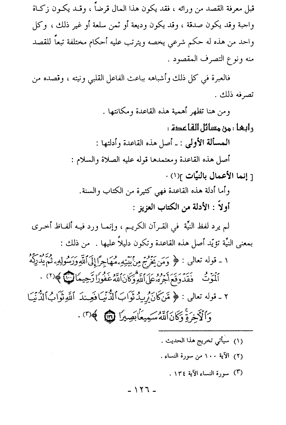 أصل هذه القاعدة ومعتمدها قوله عليه الصلاة والسلام: [إنما الأعمال بالنيَّات] (¬1).