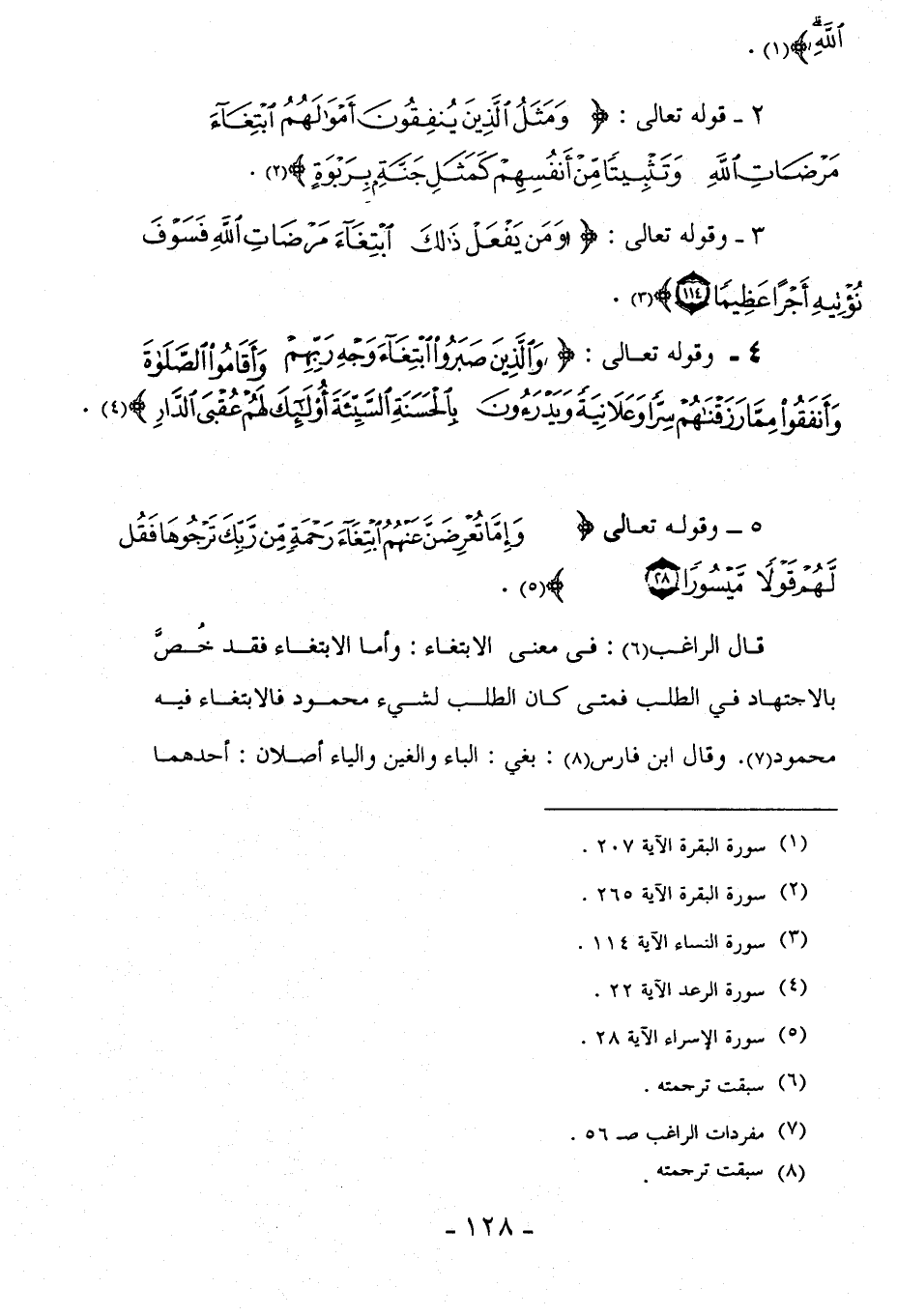 قال الراغب (¬6): في معنى الابتغاء: وأما الابتغاء فقد خُصَّ بالاجتهاد في الطلب فمتى كان الطلب لشيء محمود فالابتغاء فيه محمود (¬7). وقال ابن فارس (¬8): بغي: الباء والغين والياء أصلان: أحدهما