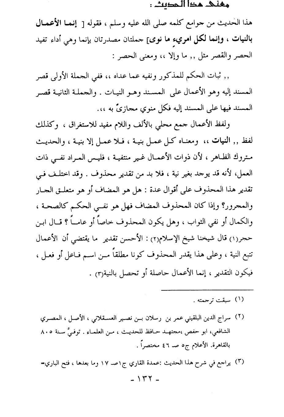 (¬3) يراجع في شرح هذا الحديث: عمدة القاري ج 1 صـ 17 وما بعدها، فتح الباري =