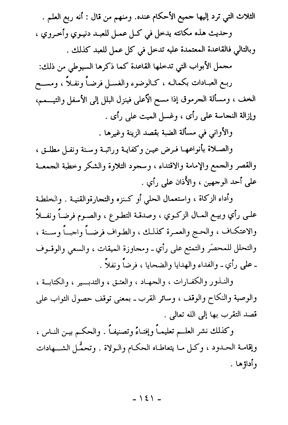 وحديث هذه مكانته يدخل في كل عمل للعبد دنيوى وأخروي، وبالتالي فالقاعدة المعتمدة عليه تدخل في كل عمل للعبد كذلك.