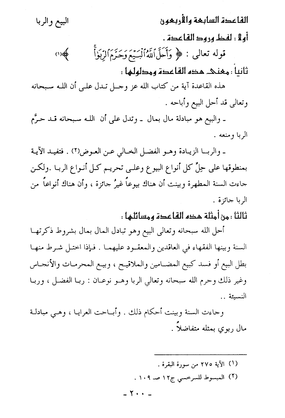 هذه القاعدة آية من كتاب الله عز وجل تدل على أن الله سبحانه وتعالى قد أحل البيع وأباحه.
