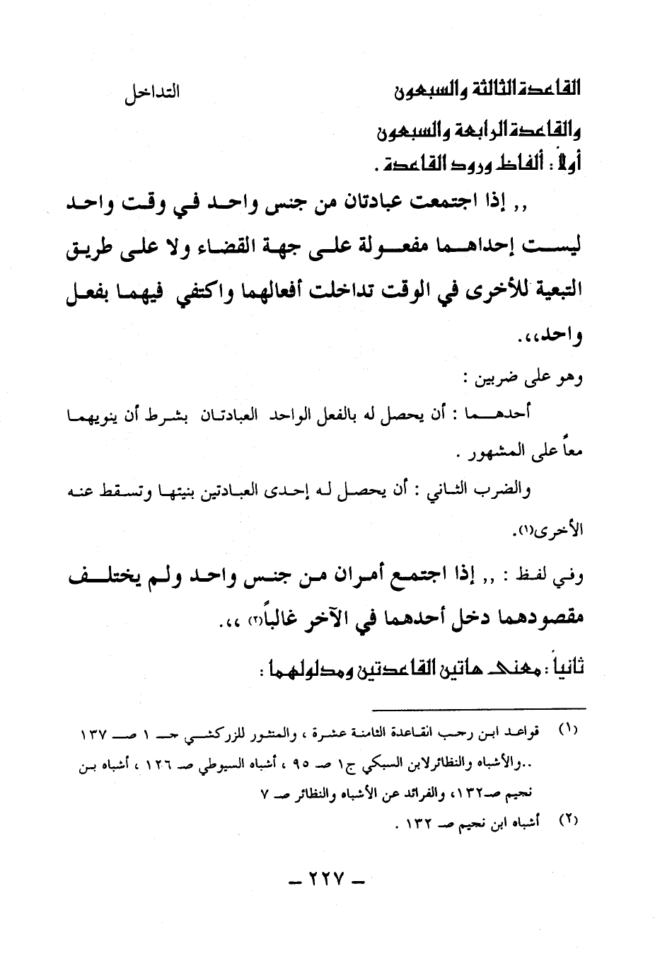 (¬1) قواعد ابن رجب القاعدة الثامنة عشرة، والمنثور للزركشي جـ 1 صـ 137 .. والأشباه والنظائر لابن السبكي ج 1 صـ 95، أشباه السيوطي صـ 126، أشباه بن نجيم صـ 132، والفرائد عن الأشباه والنظائر صـ 7