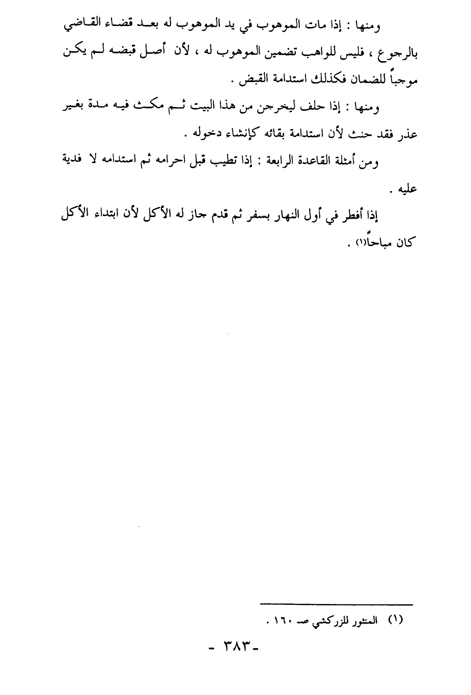 ومن أمثلة القاعدة الرابعة: إذا تطيب قبل احرامه ثم استدامه لا فدية عليه.