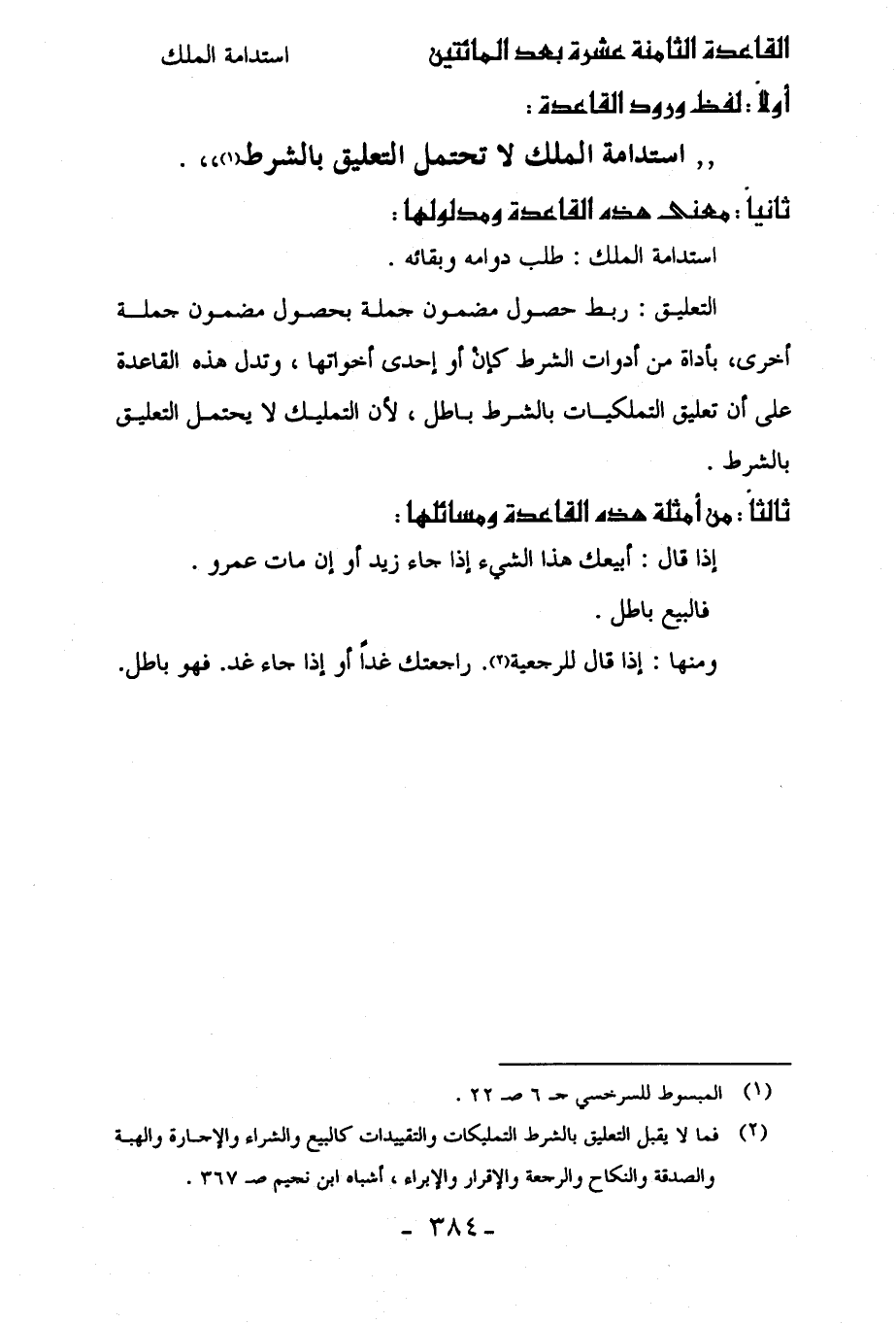 القاعدة الثامنة عشرة بعد المائتين [استدامة الملك]