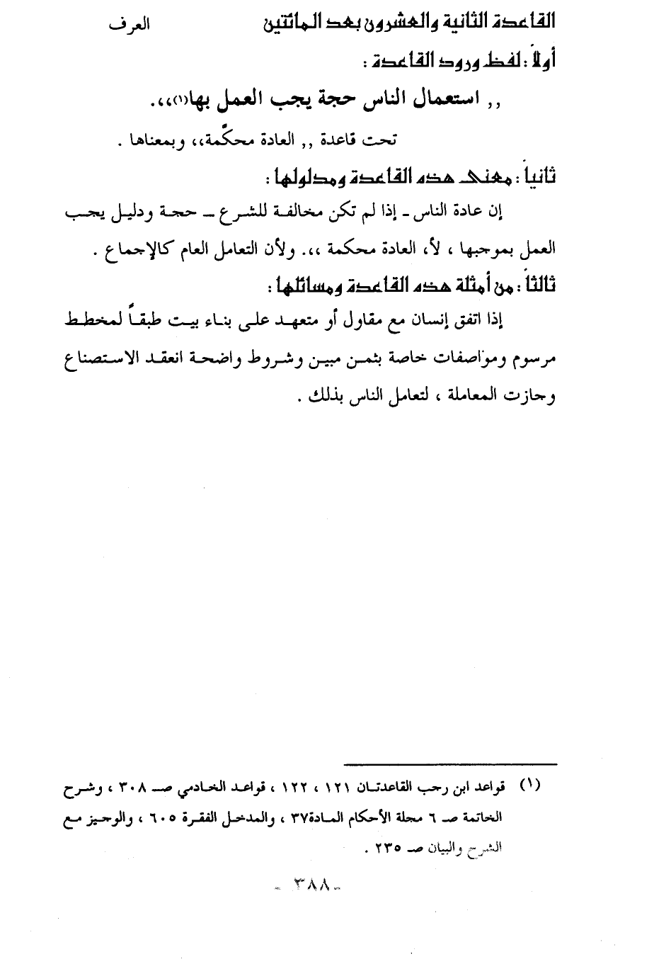 (¬1) قواعد ابن رجب القاعدتان 121، 122، قواعد الخادمي صـ 308، وشرح الخاتمة صـ 6 مجلة الأحكام المادة 37، والمدخل الفقرة 605، والوجيز مع الشرح والبيان صـ 235.