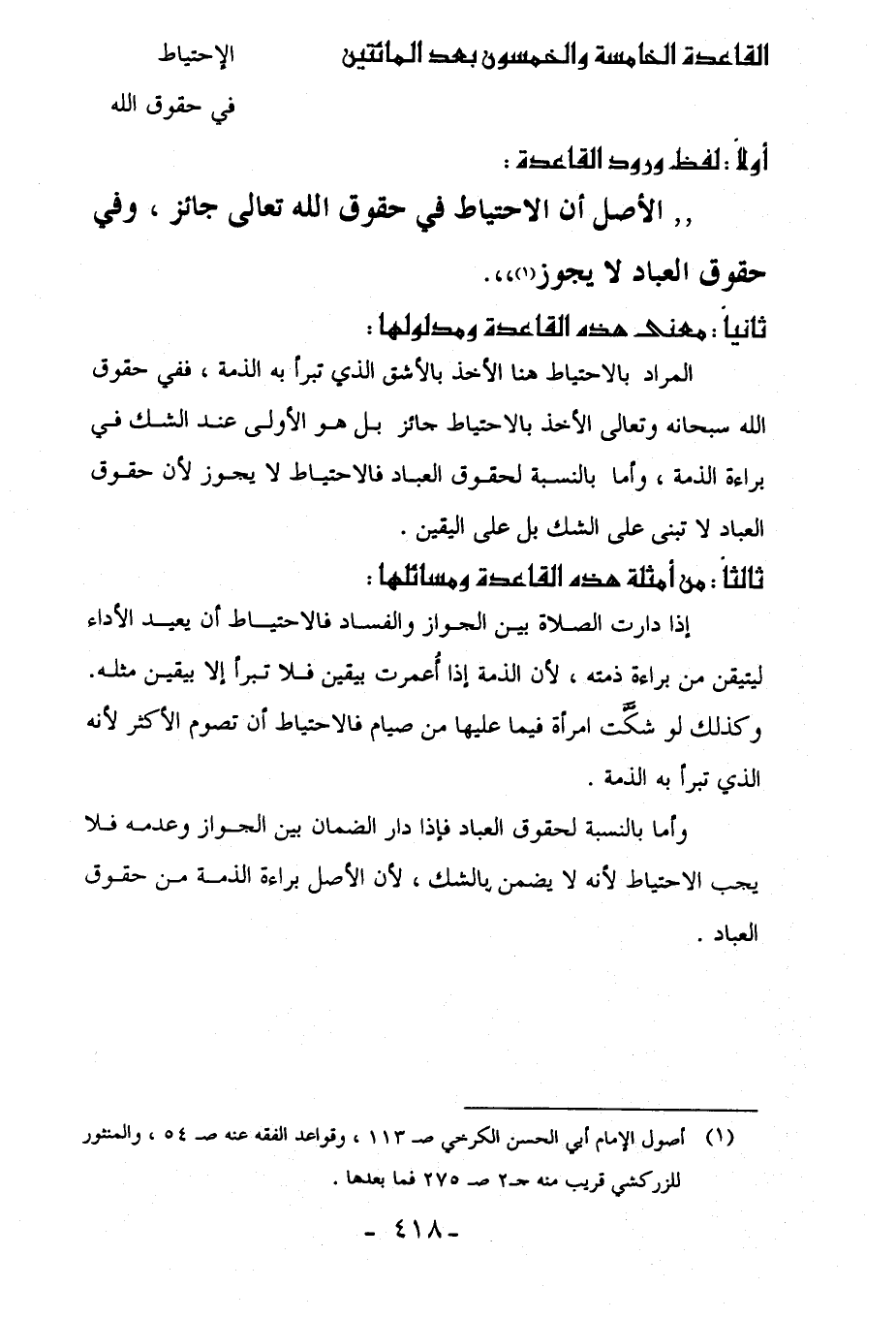 (¬1) أصول الإمام أبي الحسن الكرخي صـ 113، وقواعد الفقه عنه صـ 54، والمنثور للزركشي قريب منه جـ 2 صـ 275 فما بعدها.