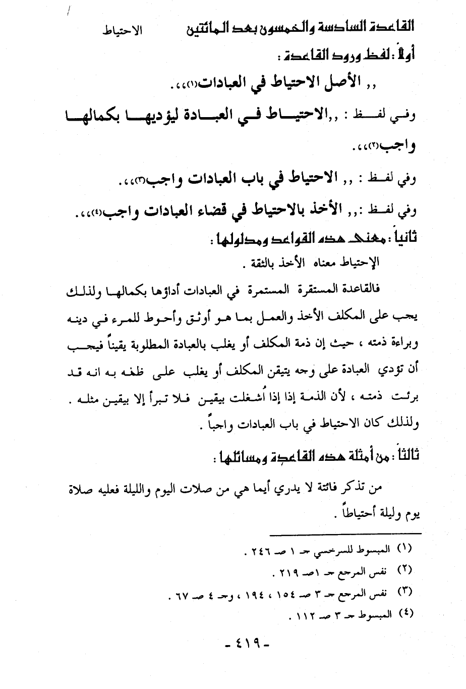 القاعدة السادسة والخمسون بعد المائتين [الاحتياط]