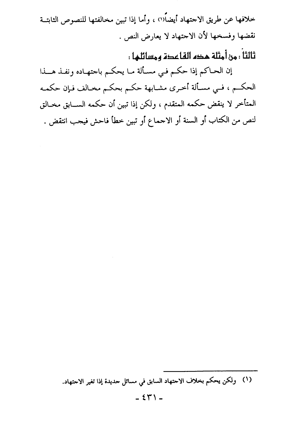 (¬1) ولكن يحكم بخلاف الاجتهاد السابق في مسائل جديدة إذا تغير الاجتهاد.