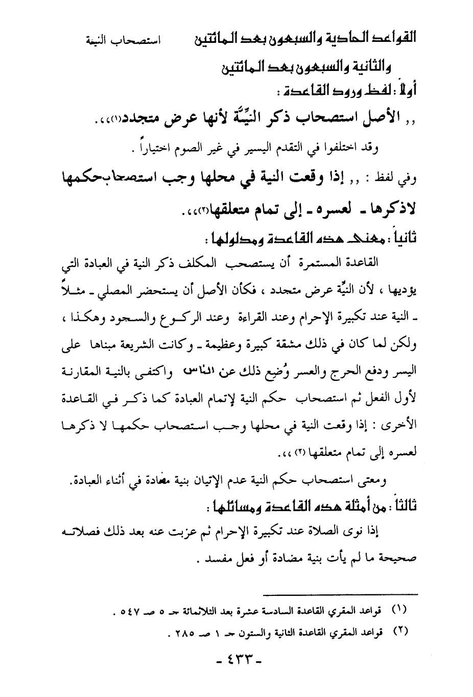 القواعد الحادية والسبعون بعد المائتين والثانية والسبعون بعد المائتين [استصحاب النية]