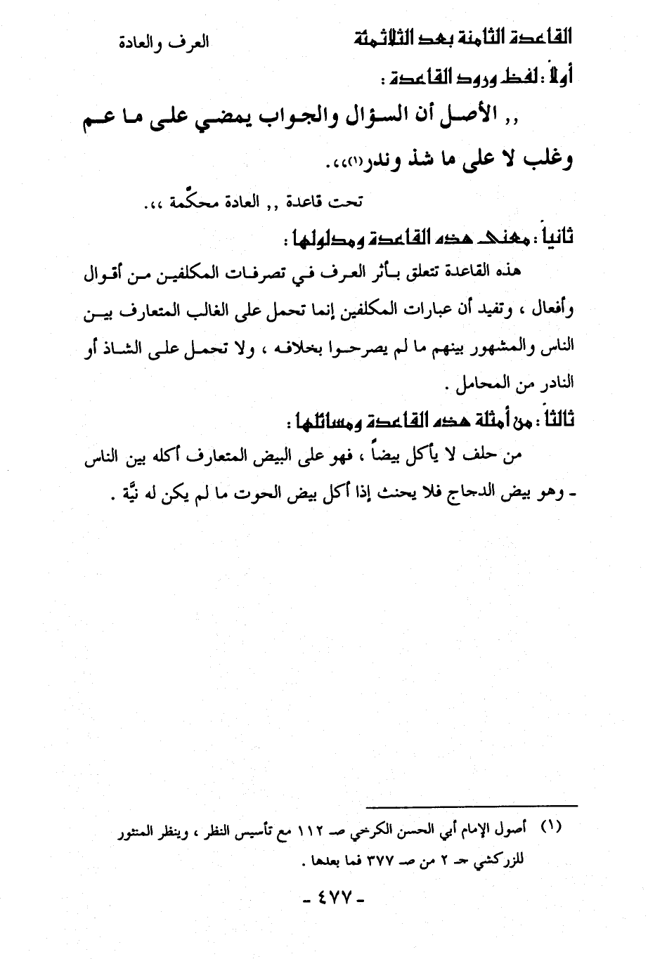 القاعدة الثامنة بعد الثلاثمئة [العرف والعادة]