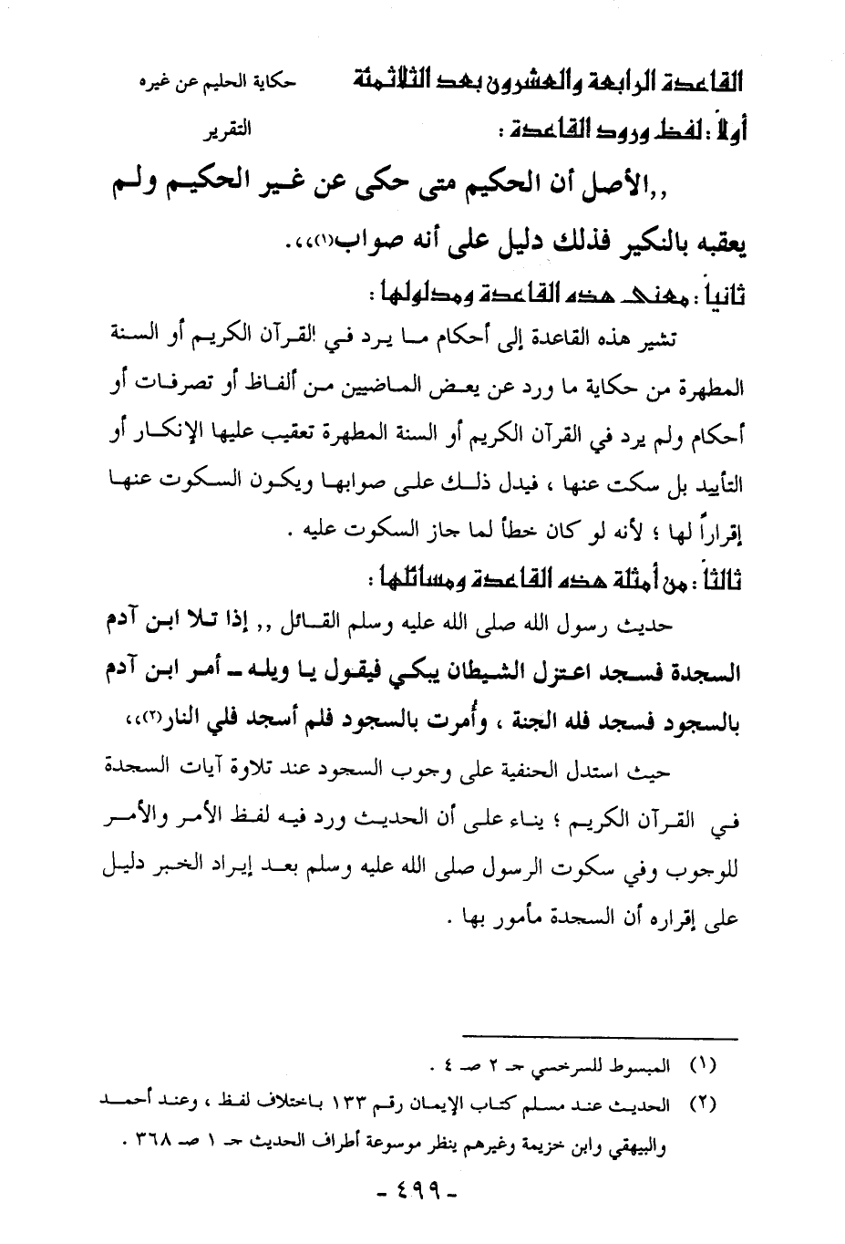 القاعدة الرابعة والعشرون بعد الثلاثمئة [حكاية الحليم عن غيره - التقرير]